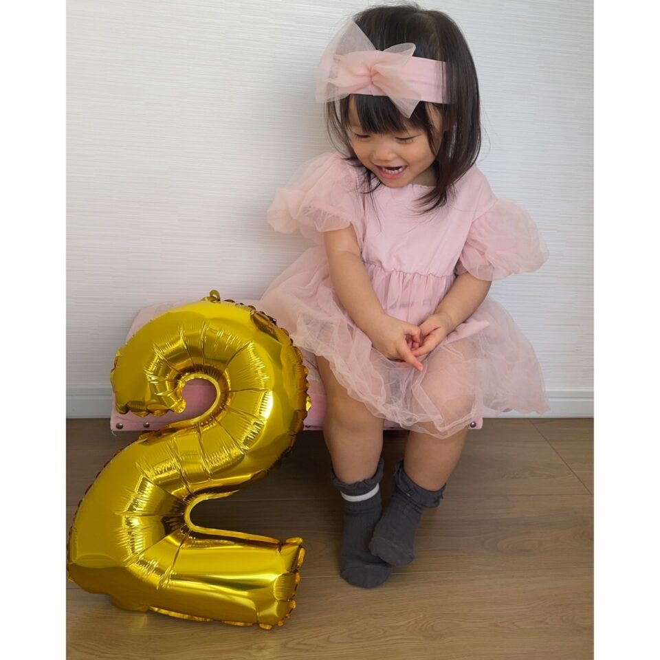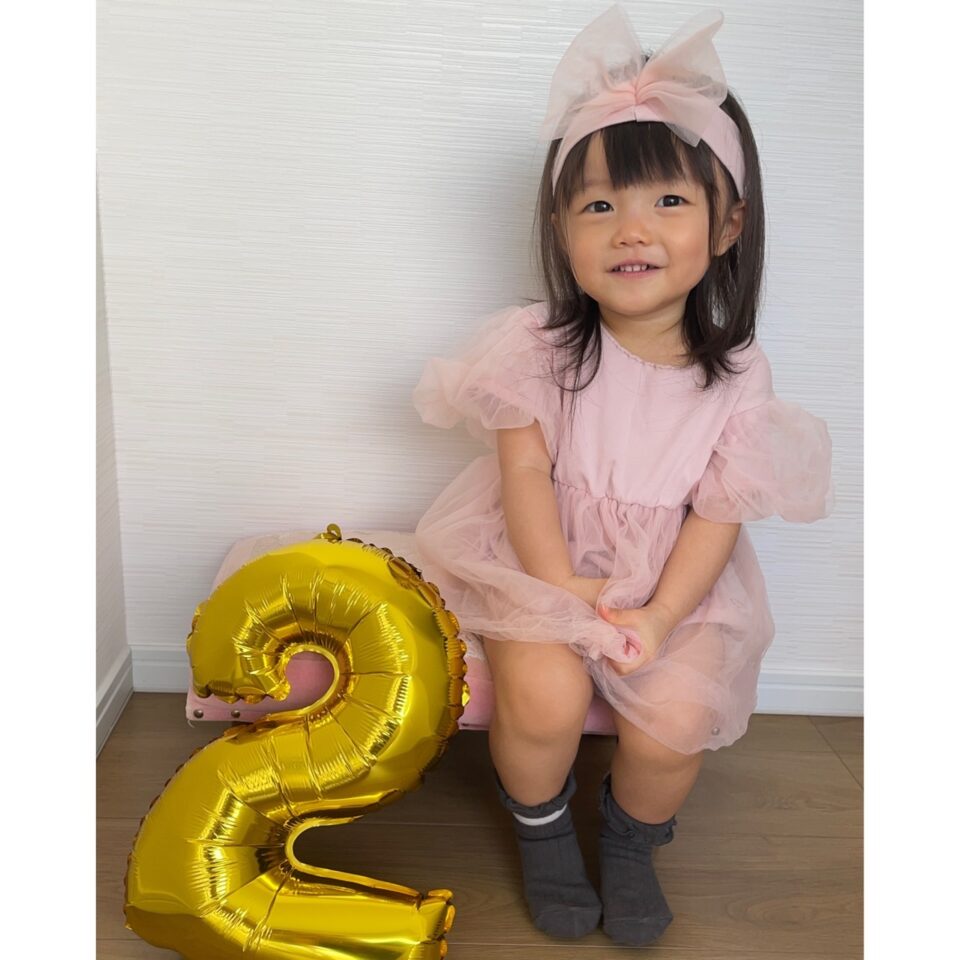 当時、1歳のバースデーの時にピンクを着せたのですが、