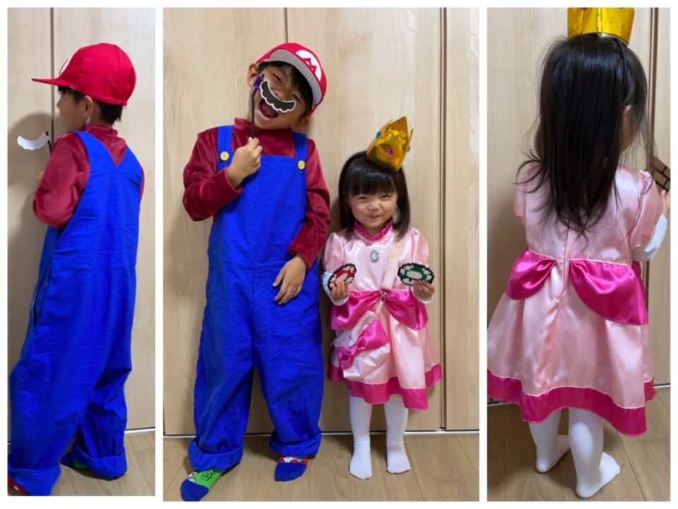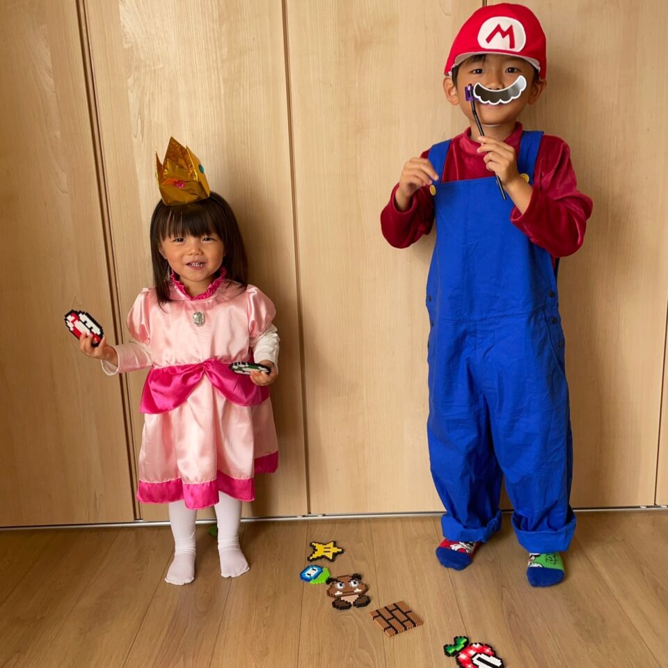 息子はマリオ、娘にはピーチ姫になってもらいました☆