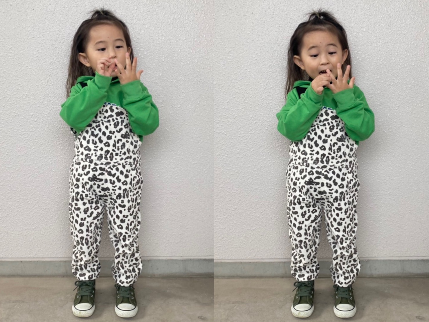 ユニセックスで着用できるかわいいヒョウ柄サロペットを